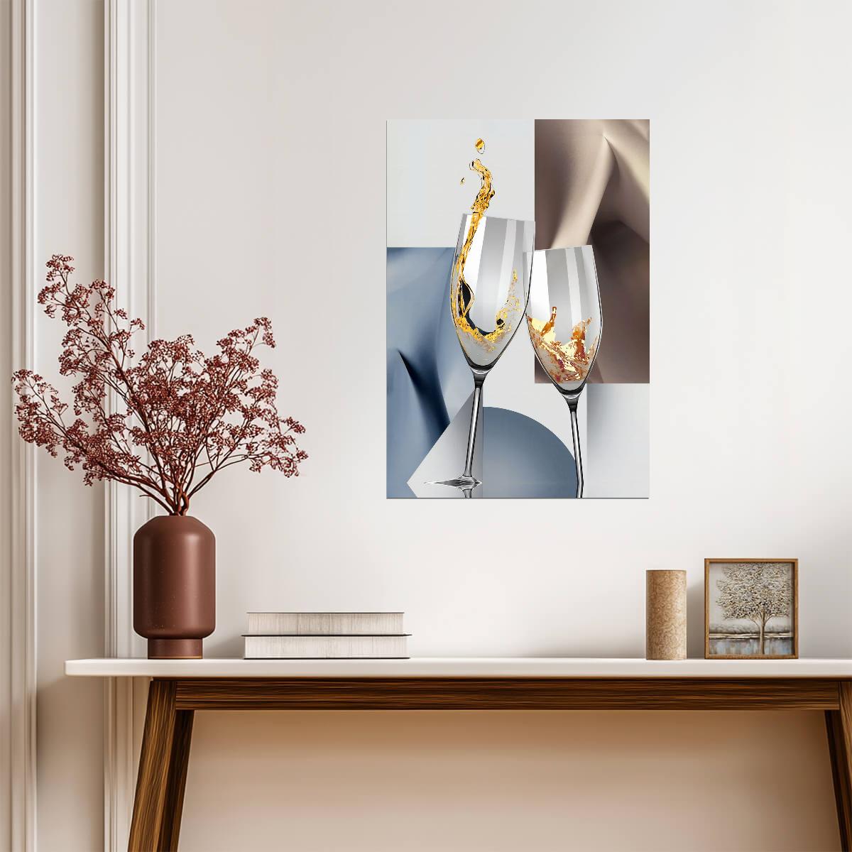 Abstract Champagne Glasses | Elegant Geometric Art Print | Modern Kitchen Poster