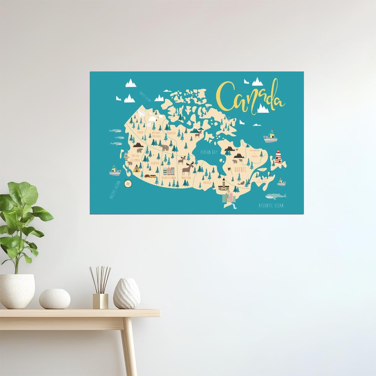 Canada Map | Illustrated Provinces and Landmarks Poster