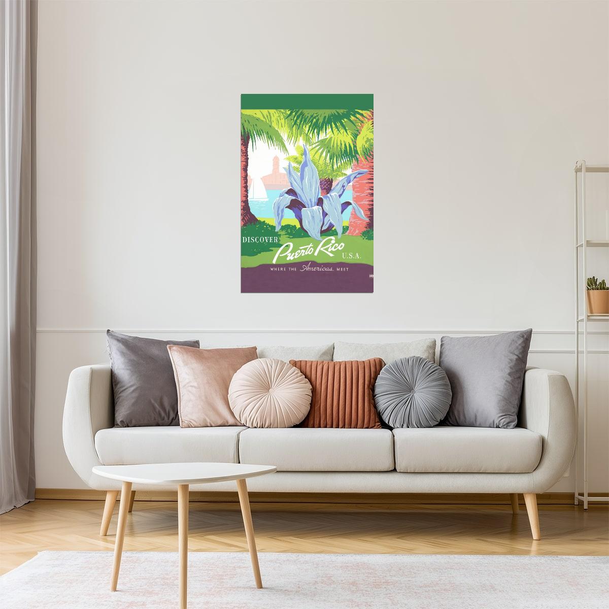 Discover Puerto Rico Poster | Retro Vintage WPA Style | Travel Wall Art