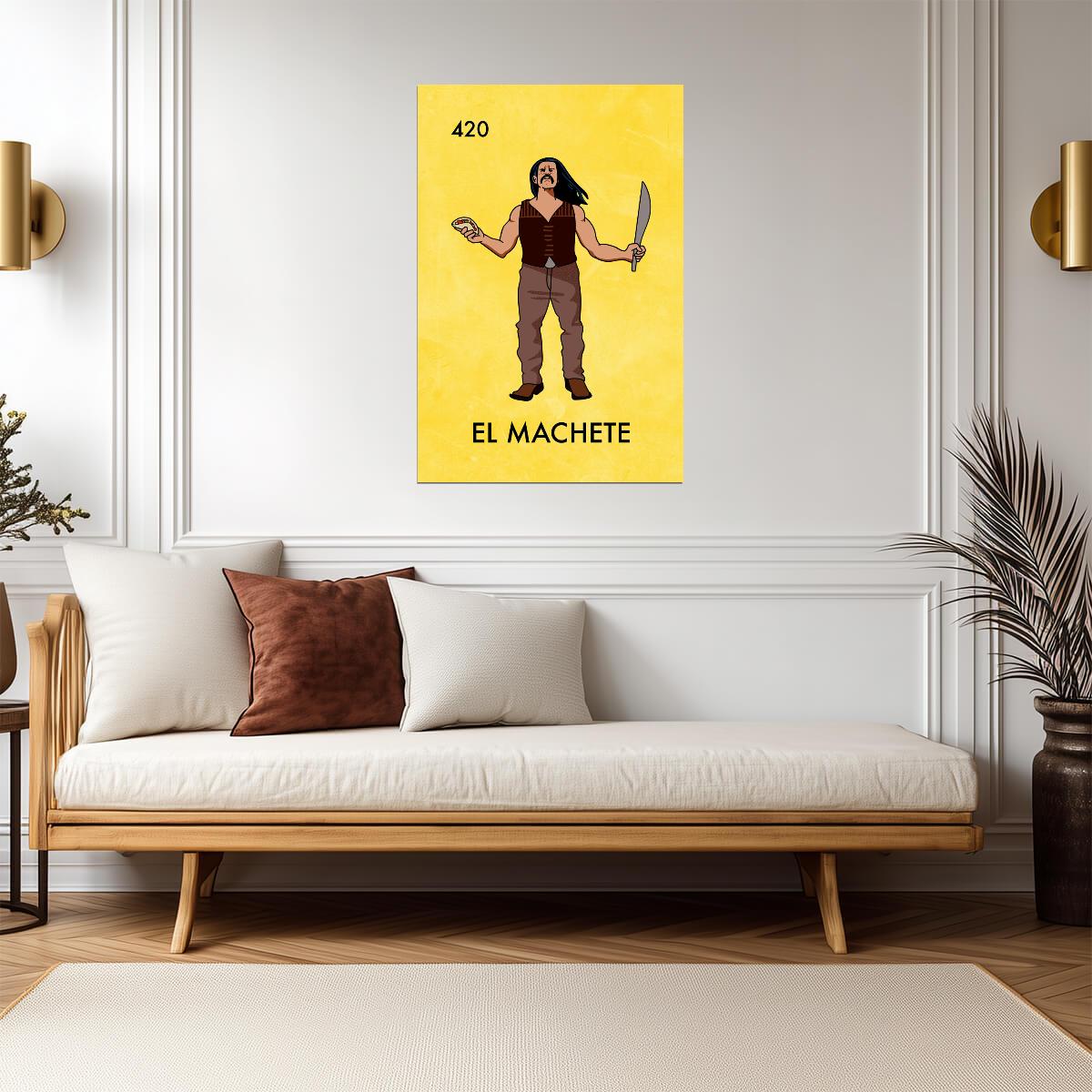 Find the perfect decorative piece for your home theater, living room, dorm room, or personal space. Whether your style is vintage, retro, or focused on genres like horror, adventure, sci-fi, or comedy, our posters have you covered. El Machete | Mexican Lottery Parody Poster | Funny Action Movie Art is the ideal addition for any fan of films, TV series, or classic cartoons.