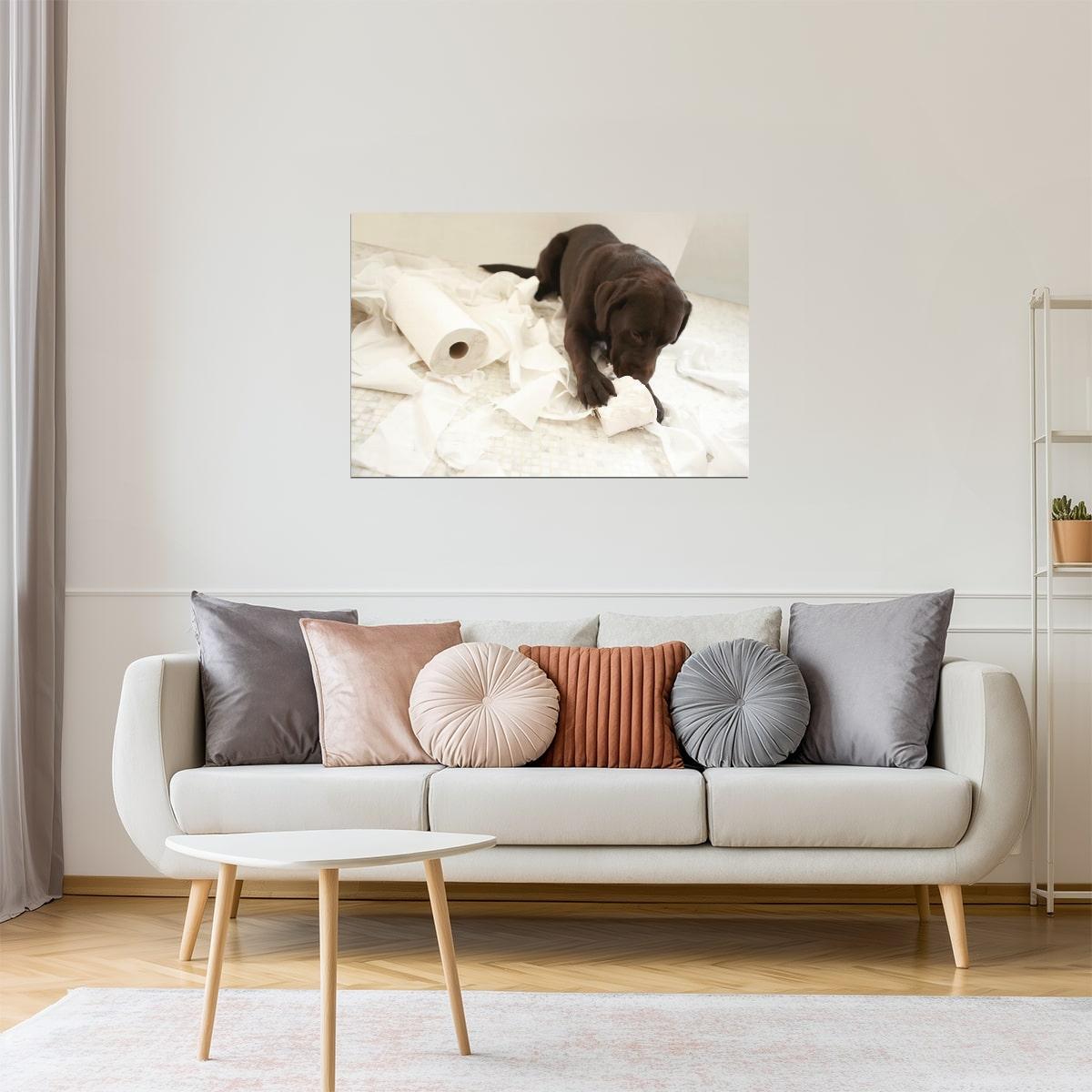 Funny Dog Making a Mess Poster | Bathroom Humor | Puppy Wall Art