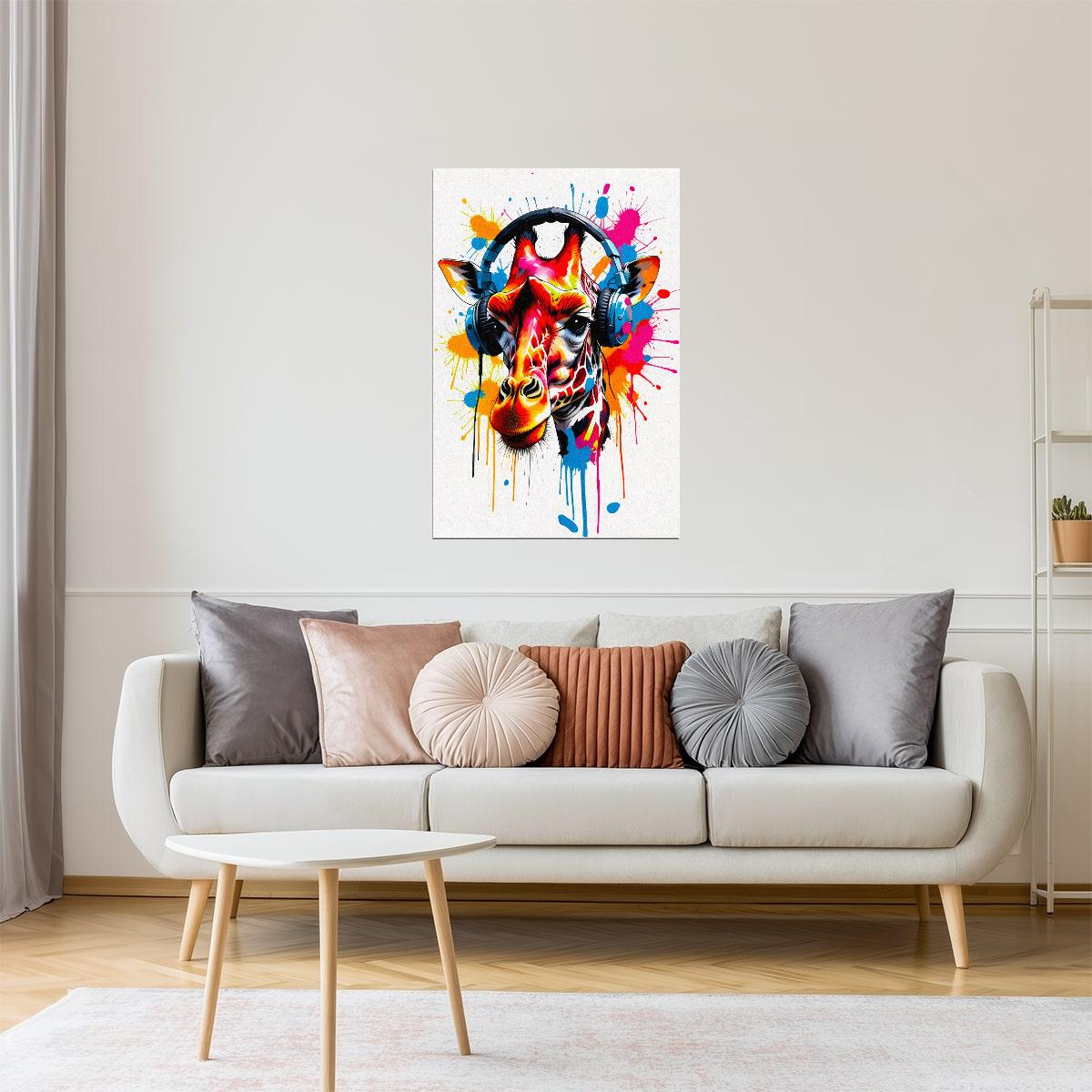 Giraffe with Headphones | Color Splash Animal Music Poster