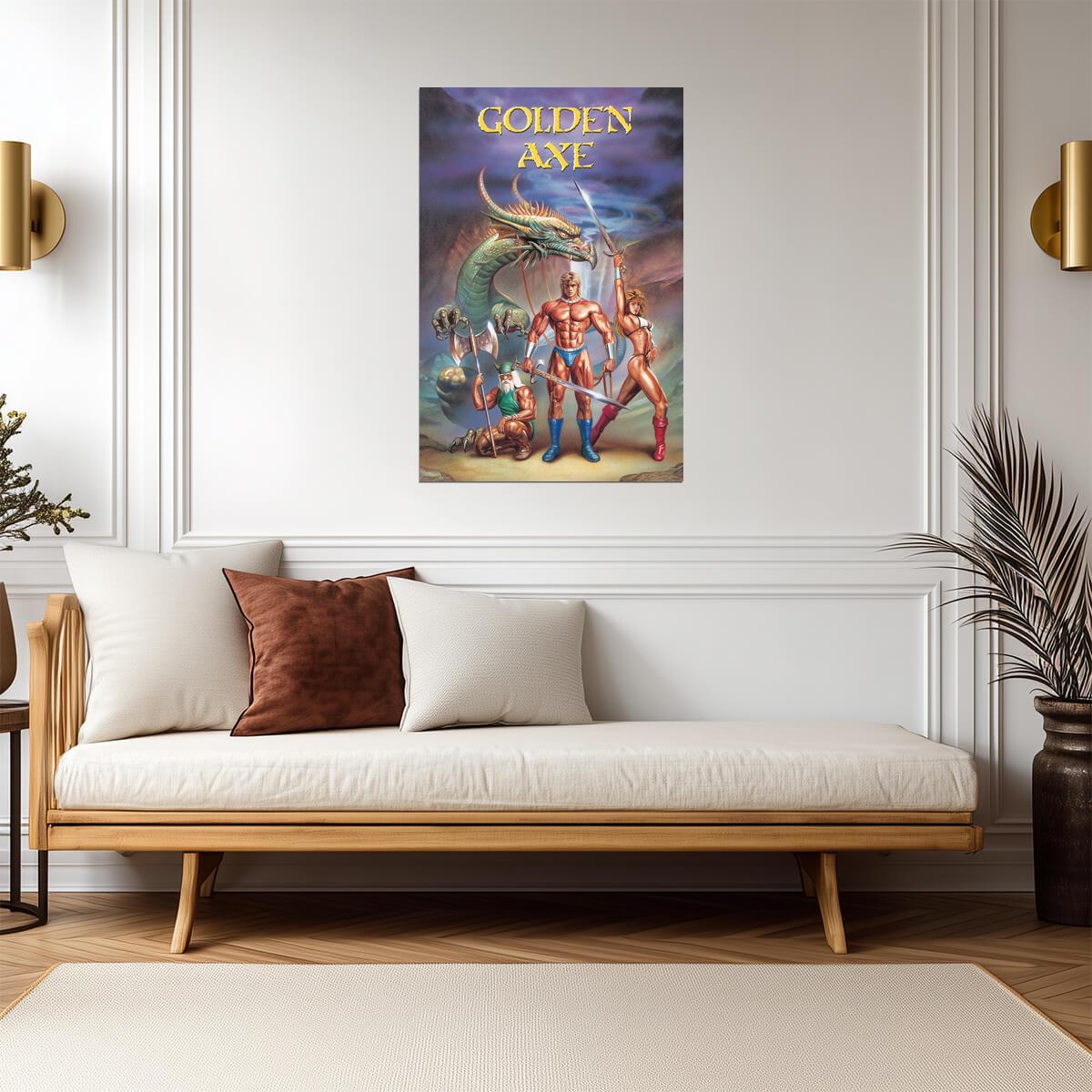 Each print in our collection brings action-packed scenes from popular games to life, from RPGs and strategy to fighting and racing. These decorative wall art pieces are perfect for creating a unique poster collage, adding a cool aesthetic style to any gaming setup. Golden Axe | Retro Gaming Poster | Nostalgic Genesis Arcade Art is a must-have for every gamer, video game enthusiast, and a cool gift for boys of all ages.