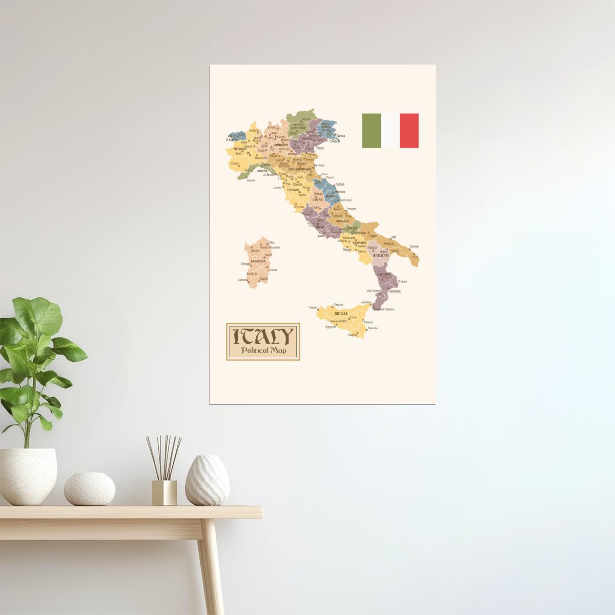 Italy Map | Vintage Political Map with Regions and Provinces Poster