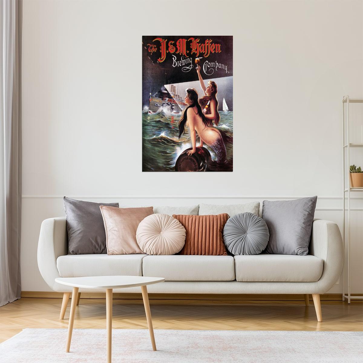 J&M Haffen Beer | Vintage Bronx Brewery Poster with Mermaids Poster