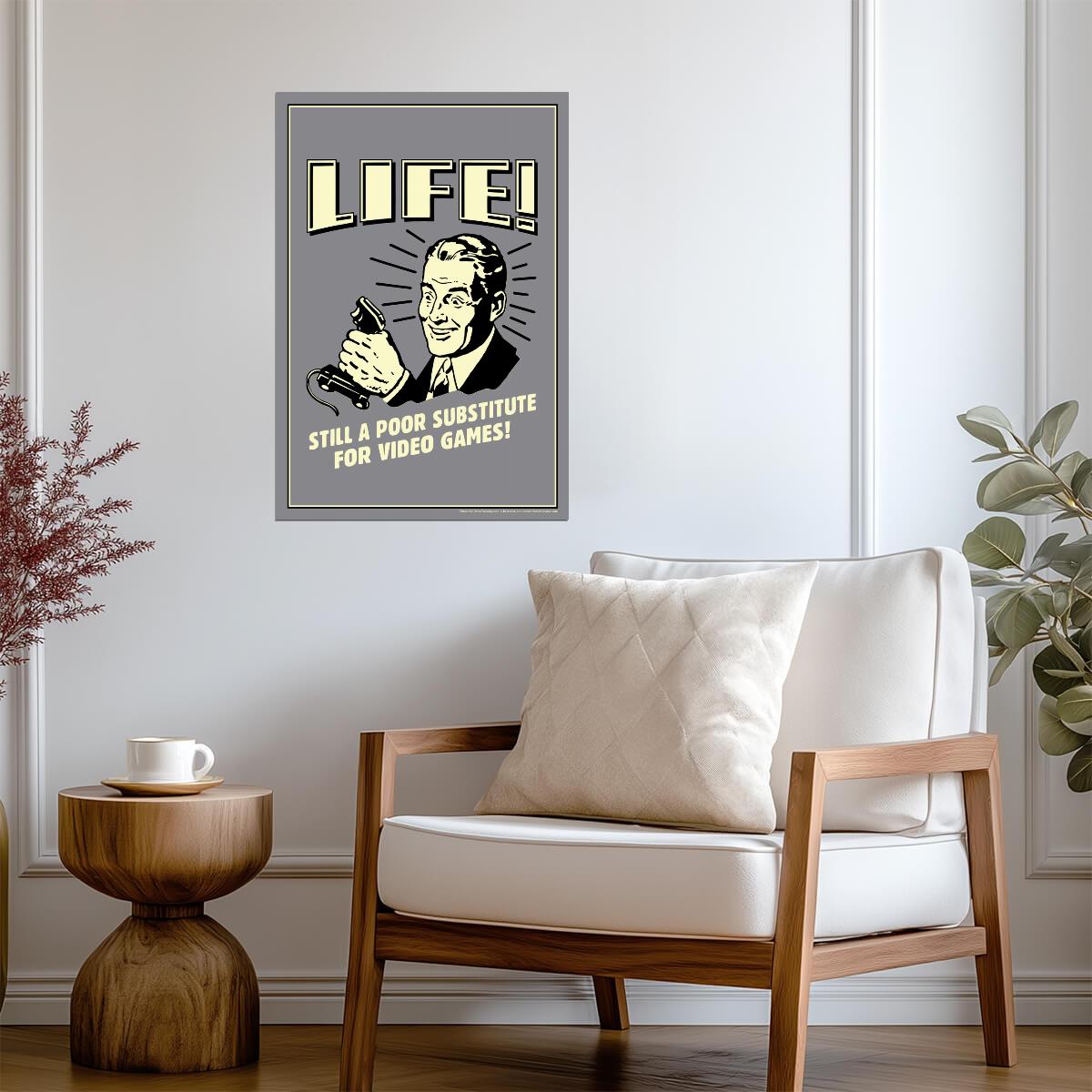Life! Still A Poor Substitute For Video Games | Funny Quote Poster | Retro Gamer Humor Art