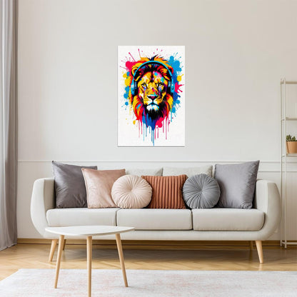 Lion with Headphones | Neon Pop Art Gamer Room Decor Poster