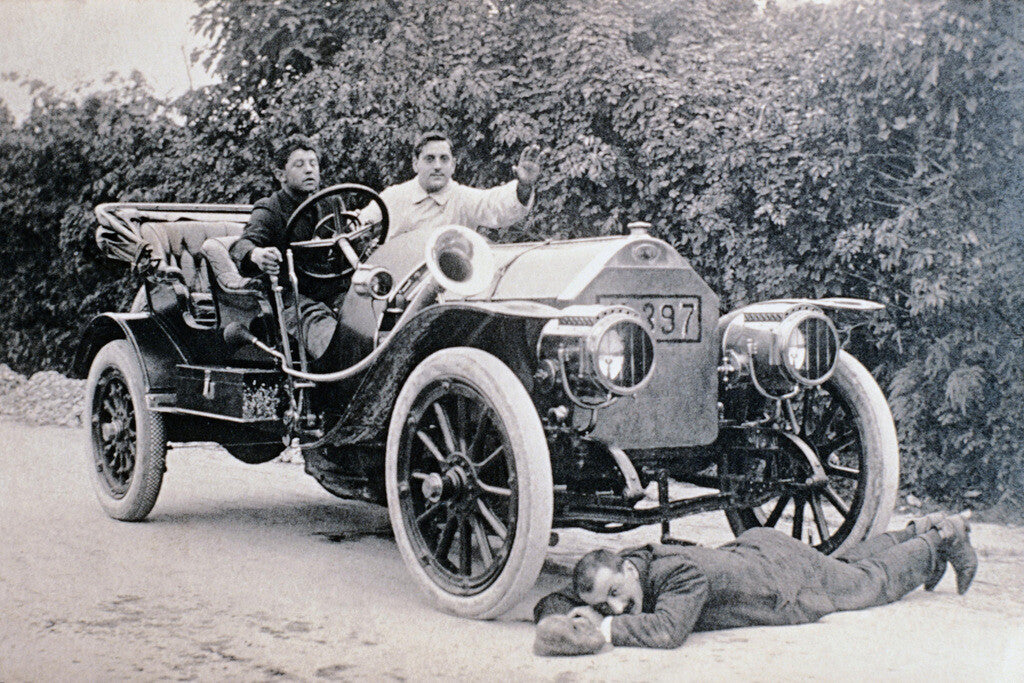 Man Hit By Car Funny Poster | Vintage Black and White Photo | Humorous Wall Art