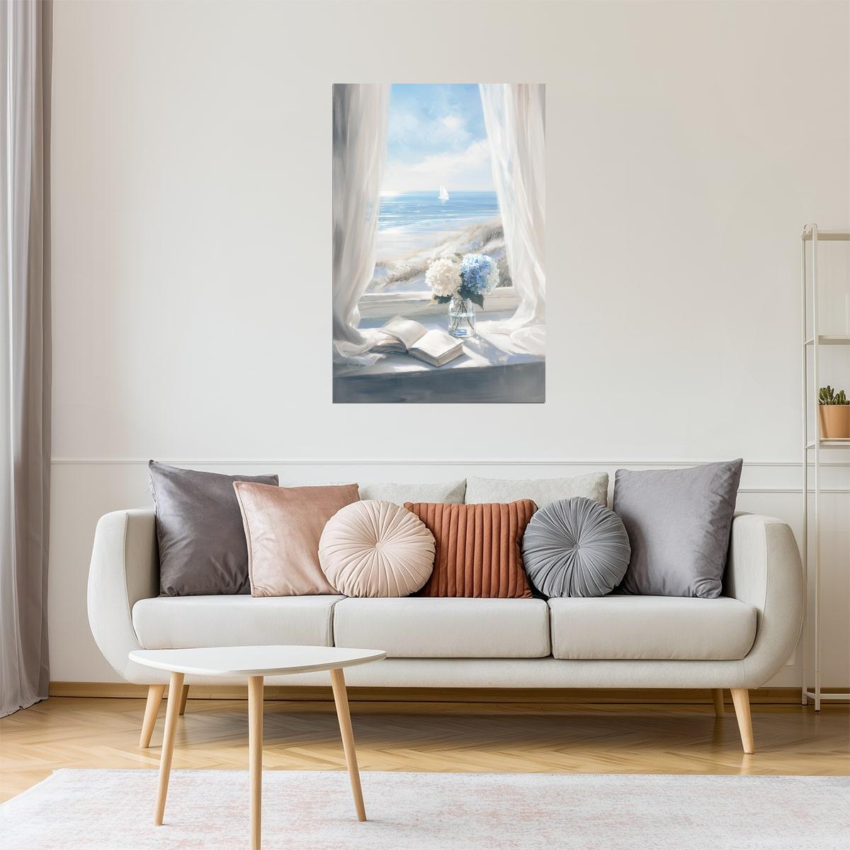 Ocean View with Flowers and Book | Coastal Granddaughter Bookish Aesthetic Poster