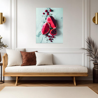 Pomegranate and Watermelon Still Life | Vibrant Kitchen Photography | Colorful Fruit Poster