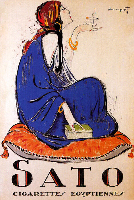 Sato Cigarettes | Vintage French Ad with Seated Fashionable Smoker Poster