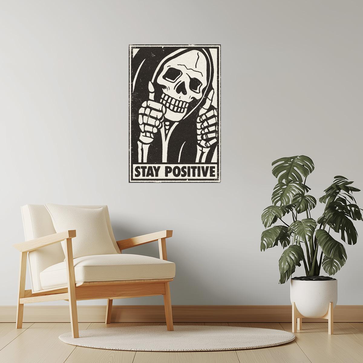 Stay Positive | Skeleton Halloween Dark Humor Wall Art Poster
