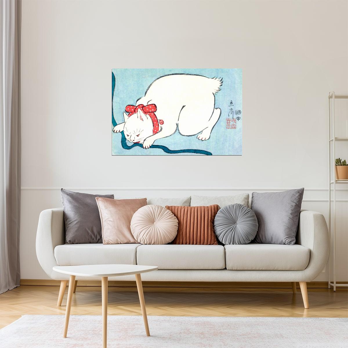 Our collection of art posters and prints offers a wide range of styles, from modern and abstract to vintage and classical. Each print is a perfect decorative piece for any home or office, adding a unique character to your living room or bedroom. White Cat with Red Ribbon | Japanese Vintage Art Print Poster is an ideal choice for any art enthusiast.